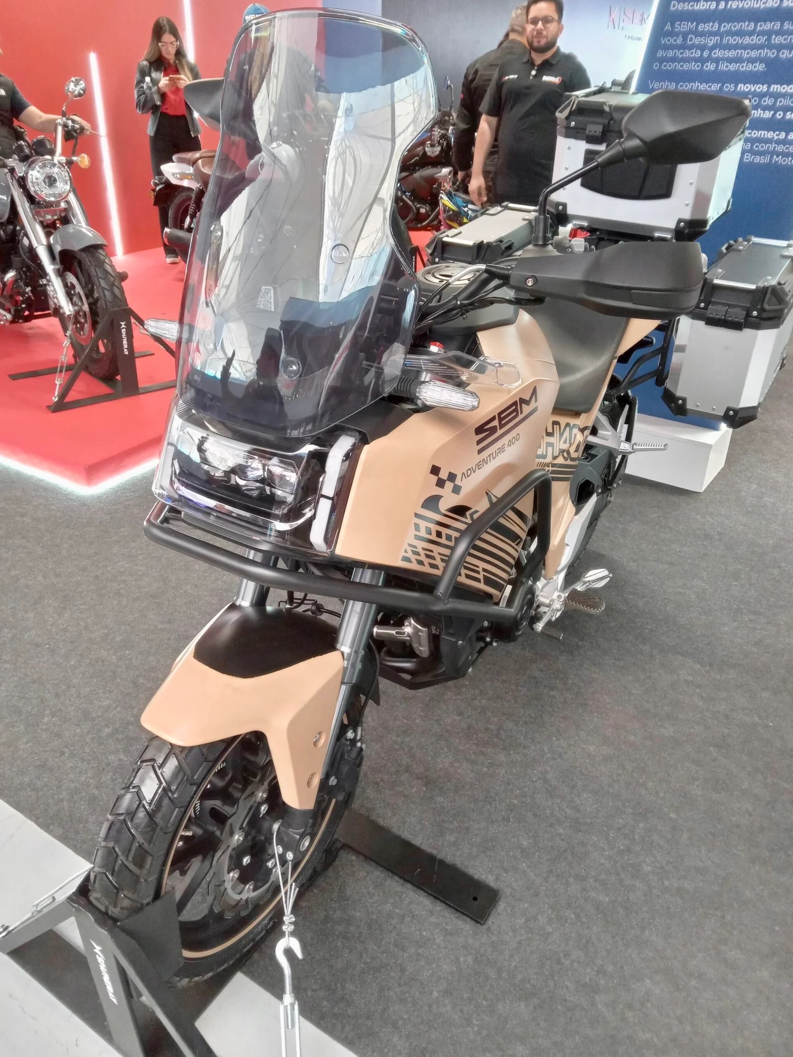 A Shineray esta presente com as suas motos e apresentou uma marca nova, a SBM, que mistura designs evidentemente “chupados” de outras fábricas, mas que tem um acabamento melhor. Não sei muito o que falar delas, achei no mínimo curiosas: