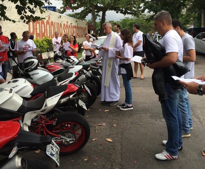 Padre Tiago benzendo as motos